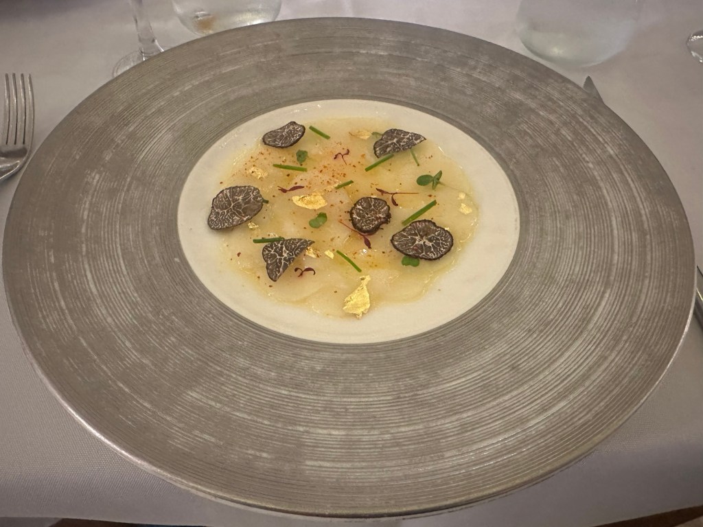 前菜は帆立とトリュフ。