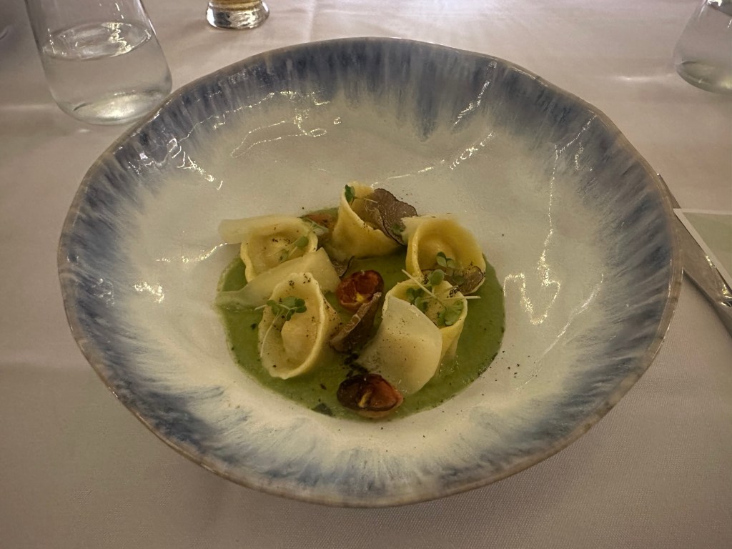 トルテッリーニは山羊のチーズ、アスパラガスのソース。