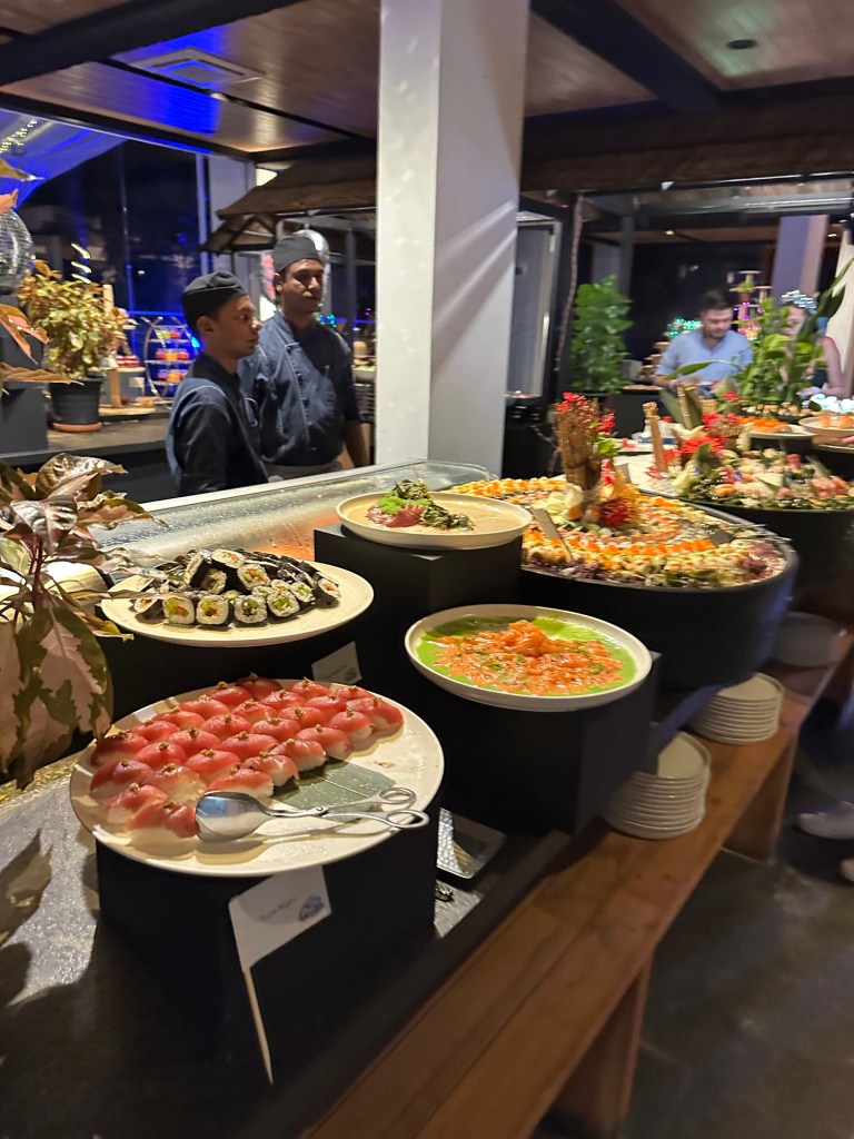 大晦日はレストランはやっておらず、カウントダウンパーティーが行われる会場でのビュッフェになりました。