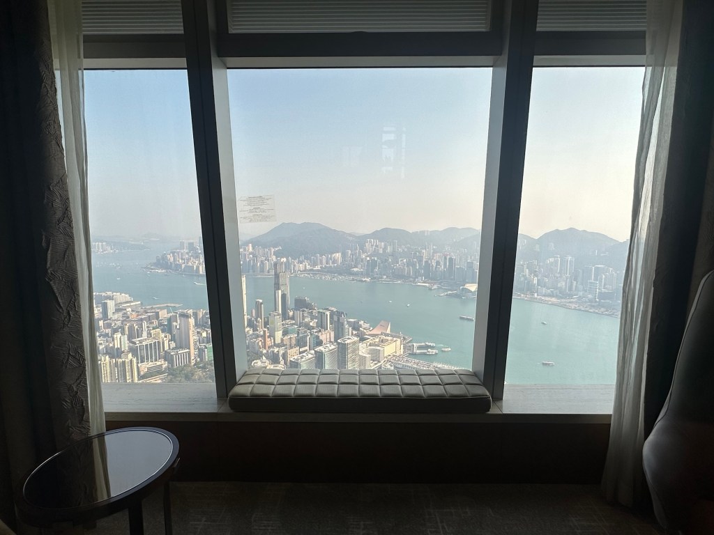 今回はザ・リッツ・カールトン香港に滞在しました。香港で1番高いビルになります。