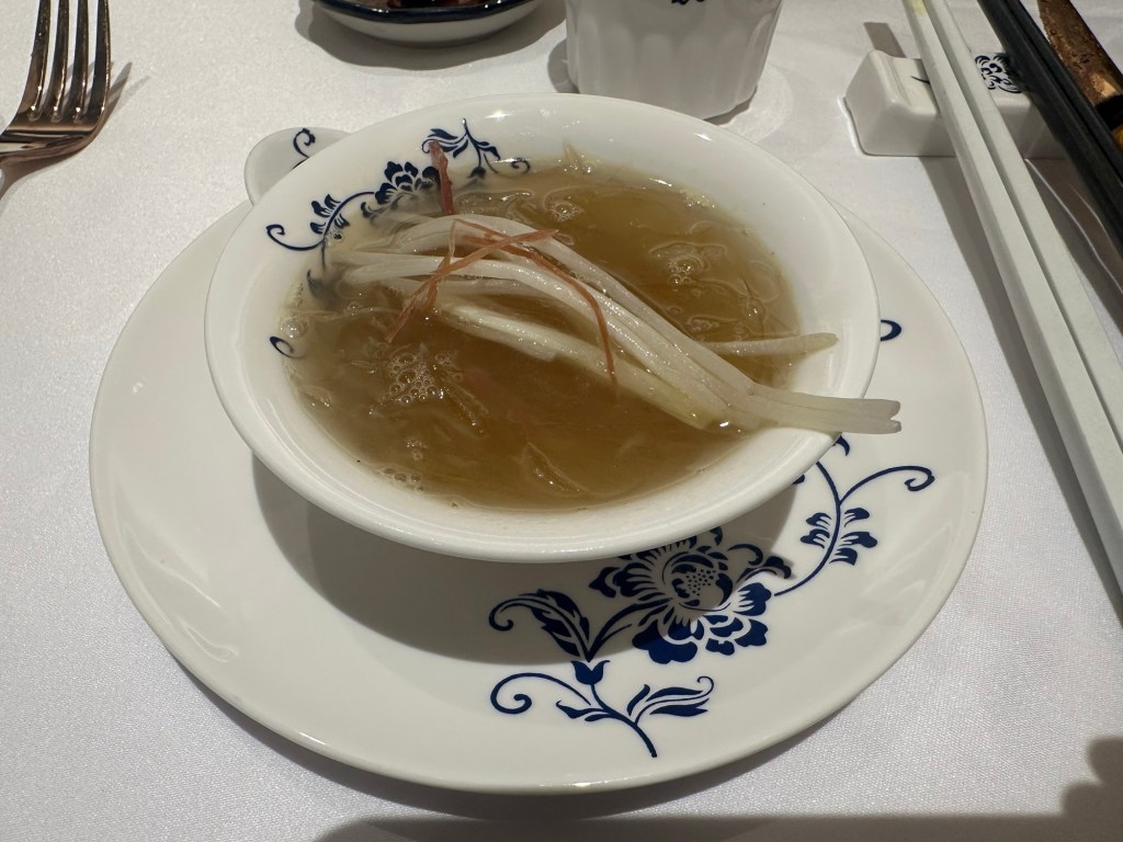 フカヒレスープが食べたくて注文したら、自分でフカヒレやもやしをスープに入れるスタイルでした。