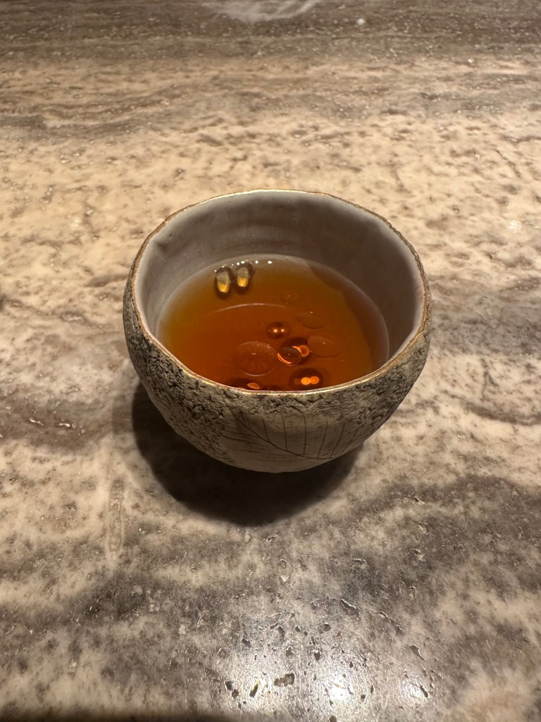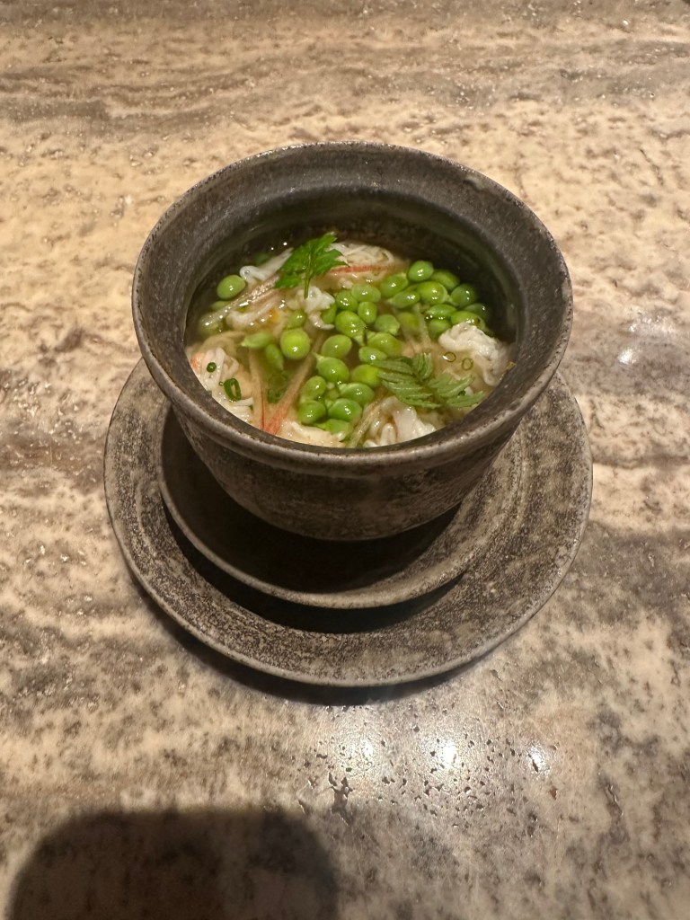 四品目は蟹とお豆とイベリコ豚のコンソメです。