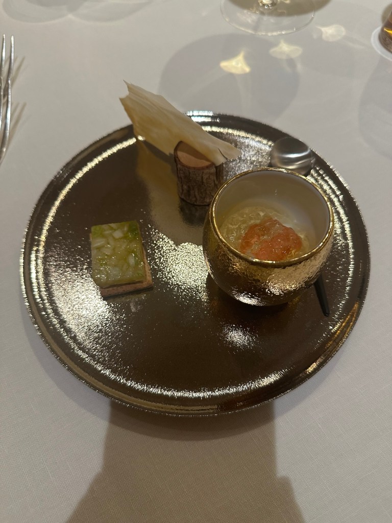一品目は、駿河湾産手長海老と三島人参のテリーヌです。