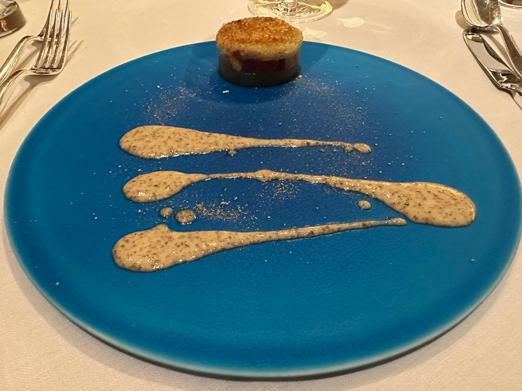 三品目は、沼津産赤海老と金目鯛のメダイヨン伊豆産柑橘の香るヴィエノワーズです。